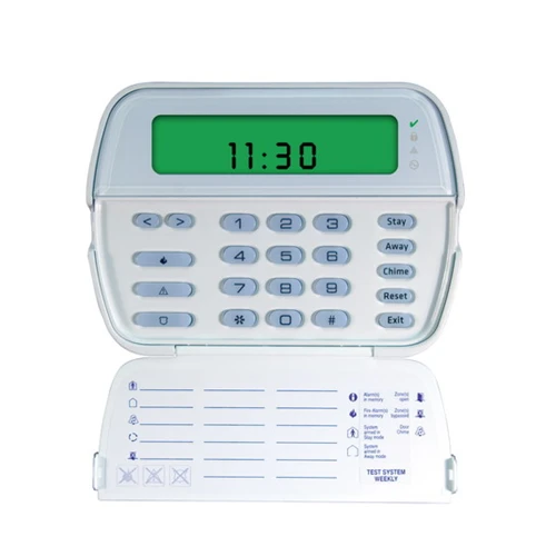 The PK5501ENG wired keypad is compatible with wired Powerseries alarm systems. It has English keys for Stay and Away for easy operation. For main programming and at primary access points, a Full Message PK5500 or RFK5500 series may be considered.