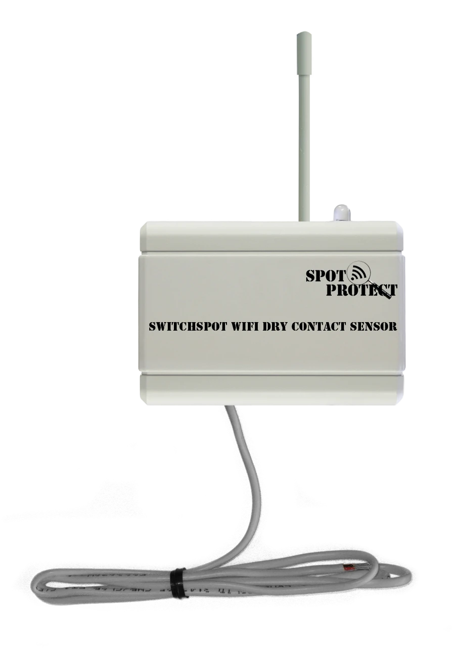 SwitchSpot is a WiFi Dry Contact Sensor for monitoring existing alarms, contact closures or other sensors with Normally Open (NO) or Normally Closed (NC) outputs.